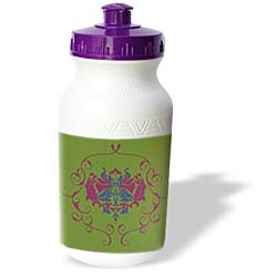 Pink and Blue Damaks In An Elegant Frame On A Green Blackground Water Bottle is 21oz capacity - 8 inch tall, 2.5 inch diameter. Sports bottle have become a welcome addition to today's fitness craze. Use sports water bottle while exercising, gardening or watching sports events. Water bottle comes with image on both sides and it is top shelf dishwasher safe.